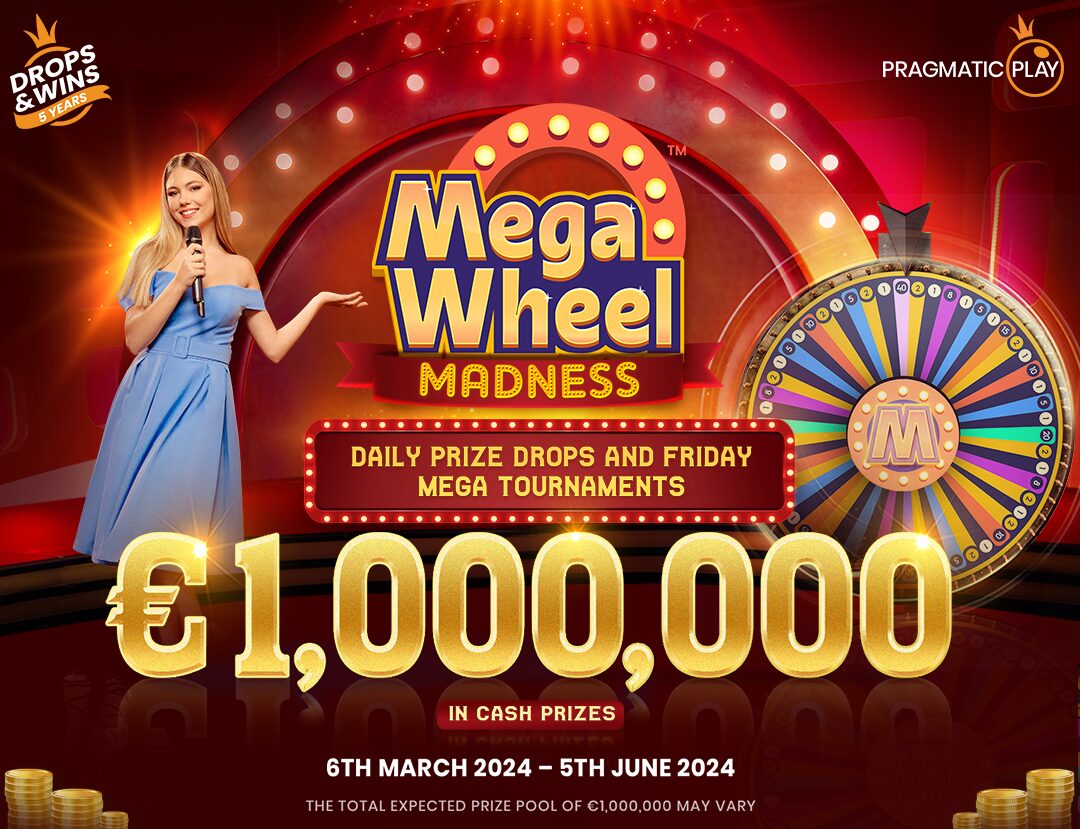 They're only one spin away from greatness. The wheel of fortune is awaiting your players. Join Pragmatic Play’s Mega Wheel Madness featuring Prize Drops and Friday Mega Tournaments with a total cash prize of EUR 1,000,000.
