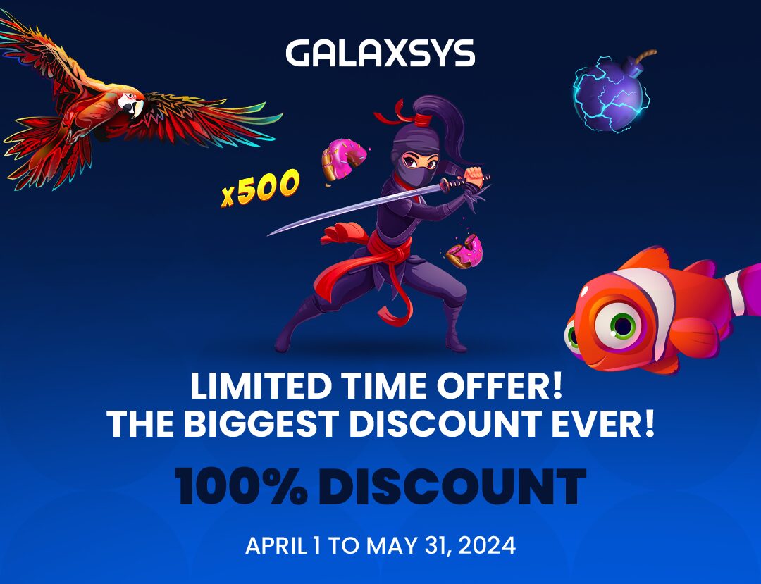 Zero cost, infinite value. Galaxsys is offering an exclusive deal to try their games at the biggest discount ever. Enable today to receive a 100% discount on the license fee for 2 months.
